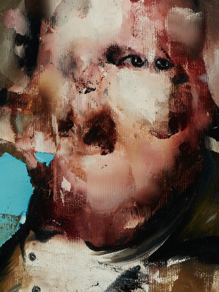 France (1980)With his dark, disorienting portraits, Florian Eymann (°1980, lives and works in Orléans/France) bridges the gap between past and present, between abstraction and figuration and between art history and his own painterly universe. He considers it a challenge to translate classical themes such as portraits, still lifes or vanitas scenes in a personal way. In doing so, he nurtures a particular fondness for contrasts between light and dark, chiaroscuro and shadow. In this way, he encourages viewers to actively seek out the image. In preparation for each series, Florian Eymann creates collages on the computer with images from the internet. He deconstructs work by old masters, and re-constructs it by adding abstractions or references to contemporary visual culture. While painting, that digital sketch does not form a compelling context, but a companion. Through the to some extent controlled chaos, he gives great freedom of interpretation to the spectators.