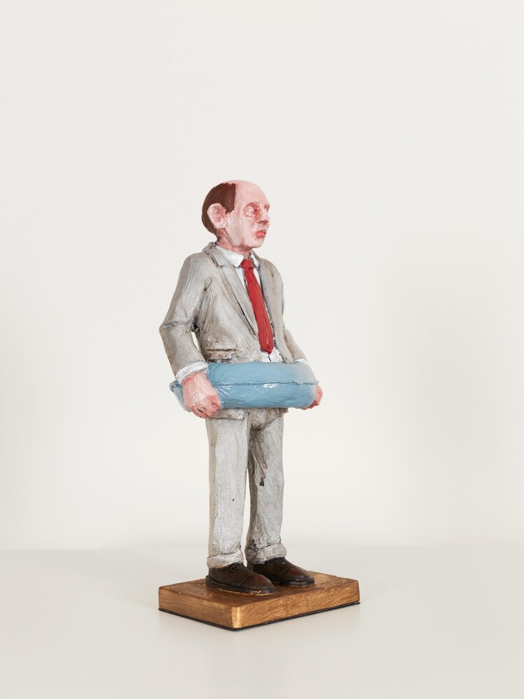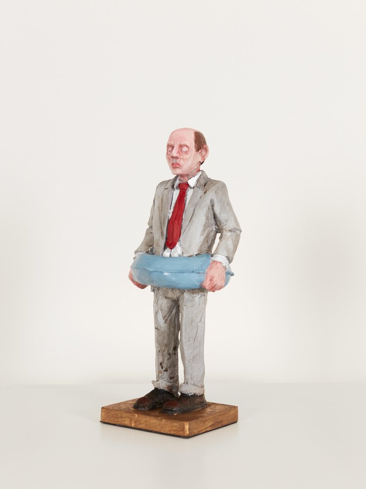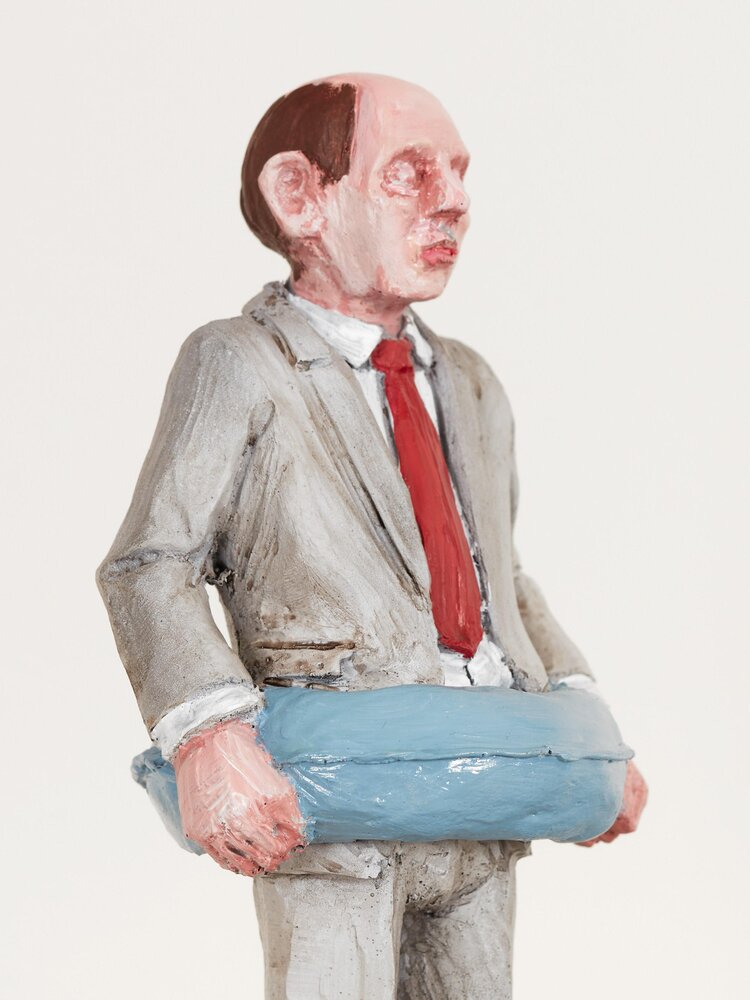 Spain (1974)With his seemingly lovely miniature sculptures, Isaac Corcal (°1974, lives and works in Pontevedra/Spain) holds up a confrontational mirror to his viewers. In the series Cement Eclipses, Cordal portrays a balding, despondent-looking middle-aged man in a grey suit. By making the figurines look alike, Cordal questions the neoliberal straitjacket we are all forced into. Using imperfect locations like cables, wall cavities or other architectural remnants as a frame, Cordal shows the passage of time and our human decadence. Moreover, this tension between what is not yet and what will never be contributes to the dramatic nature of the tableaux. With his poetic sculptures, Cordal makes his audience think about our society of control, about the way work takes up all our time and about our disrupted connection with nature and thus our existence. Thanks to the dosed, ambiguous use of humour and irony, it is not always clear whether to laugh or just cry.