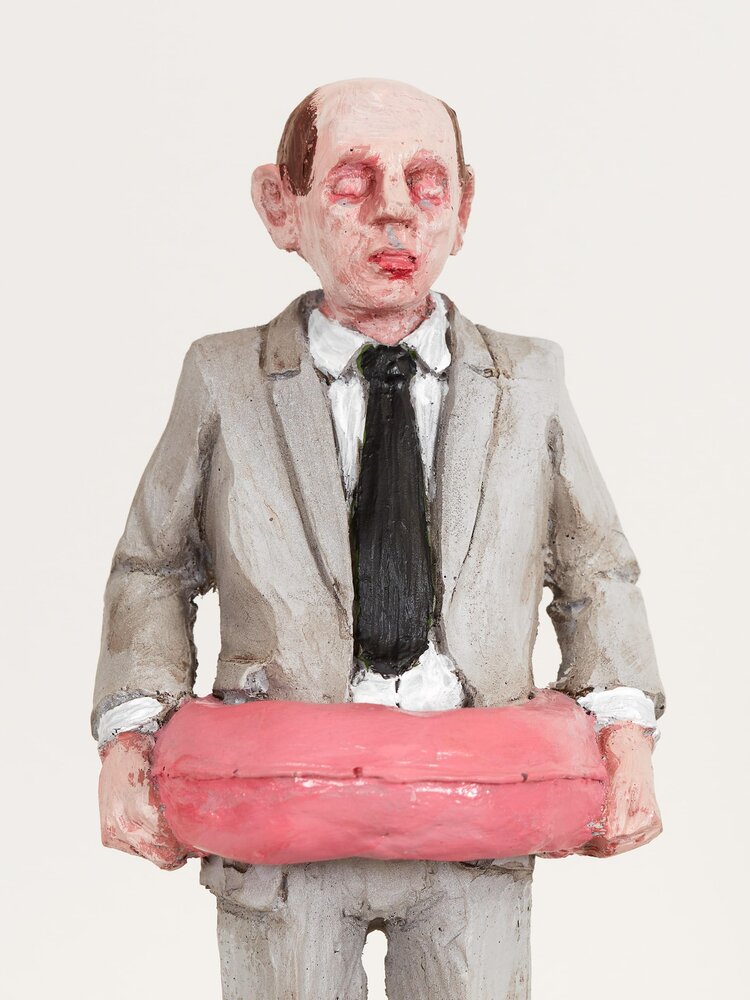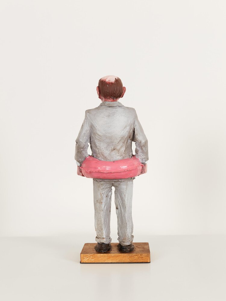 Spain (1974)With his seemingly lovely miniature sculptures, Isaac Corcal (°1974, lives and works in Pontevedra/Spain) holds up a confrontational mirror to his viewers. In the series Cement Eclipses, Cordal portrays a balding, despondent-looking middle-aged man in a grey suit. By making the figurines look alike, Cordal questions the neoliberal straitjacket we are all forced into. Using imperfect locations like cables, wall cavities or other architectural remnants as a frame, Cordal shows the passage of time and our human decadence. Moreover, this tension between what is not yet and what will never be contributes to the dramatic nature of the tableaux. With his poetic sculptures, Cordal makes his audience think about our society of control, about the way work takes up all our time and about our disrupted connection with nature and thus our existence. Thanks to the dosed, ambiguous use of humour and irony, it is not always clear whether to laugh or just cry.
