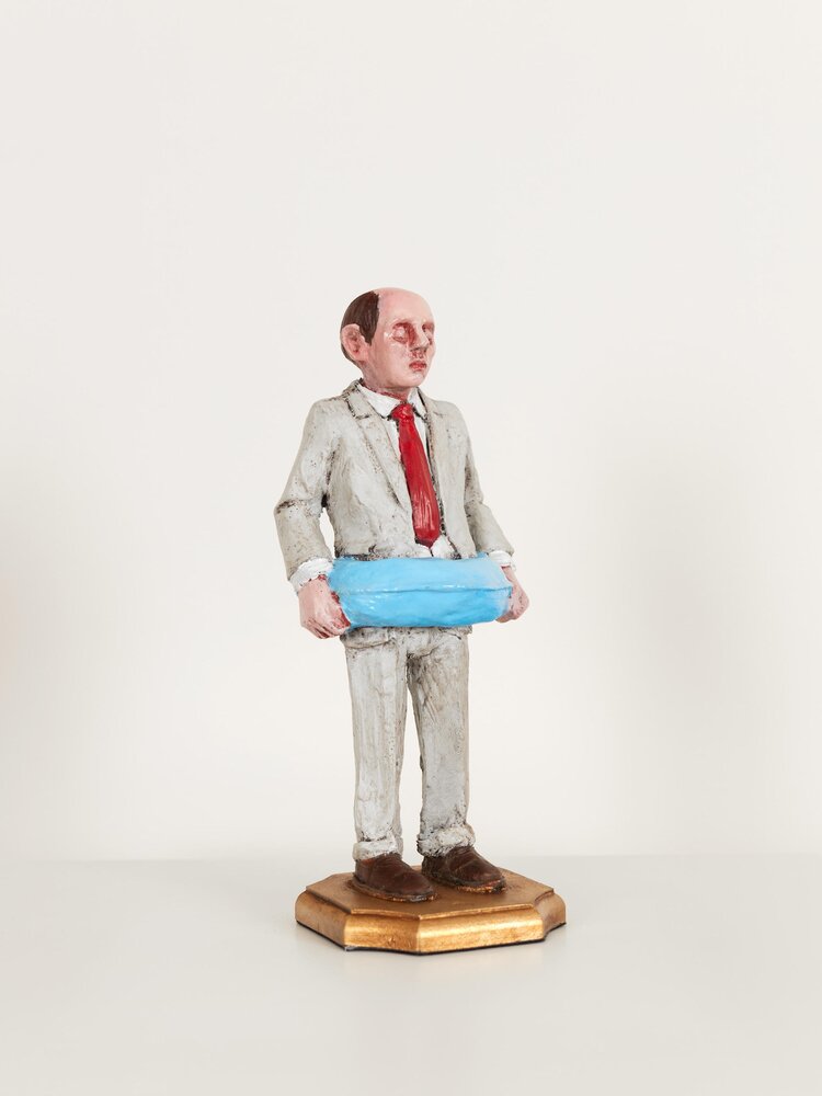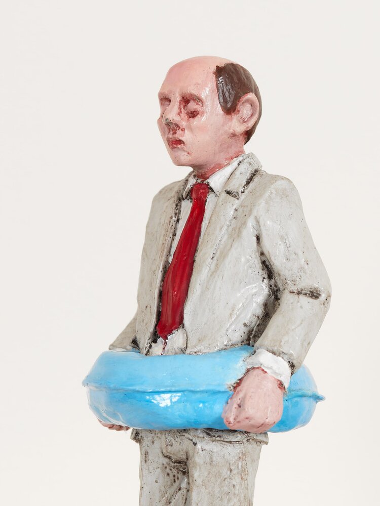 Spain (1974)With his seemingly lovely miniature sculptures, Isaac Corcal (°1974, lives and works in Pontevedra/Spain) holds up a confrontational mirror to his viewers. In the series Cement Eclipses, Cordal portrays a balding, despondent-looking middle-aged man in a grey suit. By making the figurines look alike, Cordal questions the neoliberal straitjacket we are all forced into. Using imperfect locations like cables, wall cavities or other architectural remnants as a frame, Cordal shows the passage of time and our human decadence. Moreover, this tension between what is not yet and what will never be contributes to the dramatic nature of the tableaux. With his poetic sculptures, Cordal makes his audience think about our society of control, about the way work takes up all our time and about our disrupted connection with nature and thus our existence. Thanks to the dosed, ambiguous use of humour and irony, it is not always clear whether to laugh or just cry.