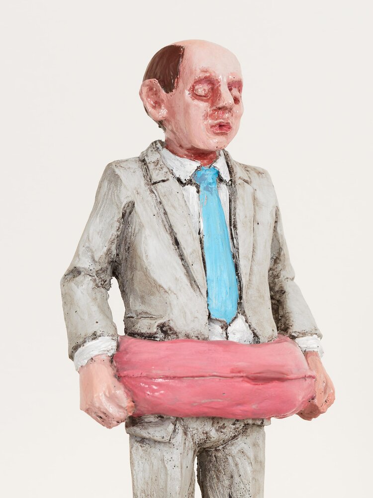 Spain (1974)With his seemingly lovely miniature sculptures, Isaac Corcal (°1974, lives and works in Pontevedra/Spain) holds up a confrontational mirror to his viewers. In the series Cement Eclipses, Cordal portrays a balding, despondent-looking middle-aged man in a grey suit. By making the figurines look alike, Cordal questions the neoliberal straitjacket we are all forced into. Using imperfect locations like cables, wall cavities or other architectural remnants as a frame, Cordal shows the passage of time and our human decadence. Moreover, this tension between what is not yet and what will never be contributes to the dramatic nature of the tableaux. With his poetic sculptures, Cordal makes his audience think about our society of control, about the way work takes up all our time and about our disrupted connection with nature and thus our existence. Thanks to the dosed, ambiguous use of humour and irony, it is not always clear whether to laugh or just cry.