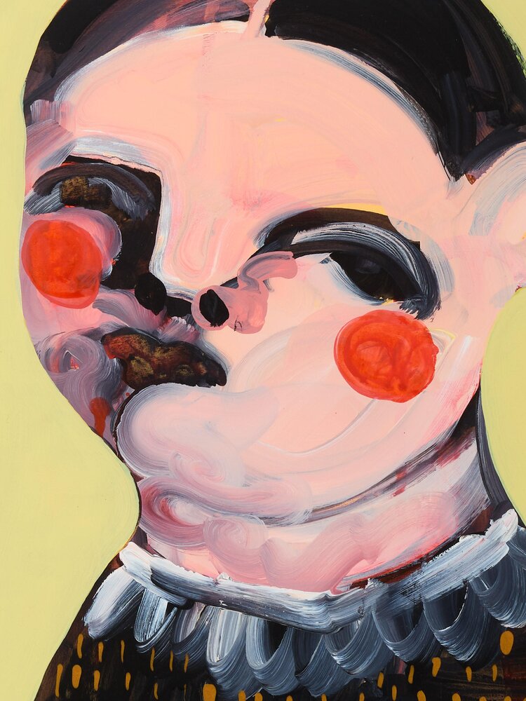 Poland (1976)In her portraits, Paulina Archambault (1976, lives and works in Viriginia/USA) searches for the purest human emotions. To do so, she likes to reach back to her childhood. By being as honest and intimate as possible in the process herself, she wants to revive those genuine emotions. While each new work starts with a few rough contours based on an abstract idea, Archambault polishes and tinkers with each image until it is just right. It is to this layering that the work owes its depth and expressive power. The acrylic paint allows her to work in both thicker and just more transparent layers, and to apply texture to the canvas through unconventional tools. Although the frontal portraits sometimes appear terrifying, for Paulina Archambault they primarily express melancholy and childlike innocence. The dark eyes give them a mysterious aura, raising questions about a deeper truth.