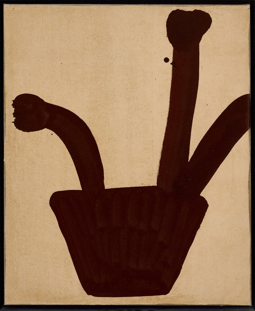 His distinguised flowers emerge naively from their pots and rise up in an almost magical gesture of freedom, simplifying reality and shaping the space.