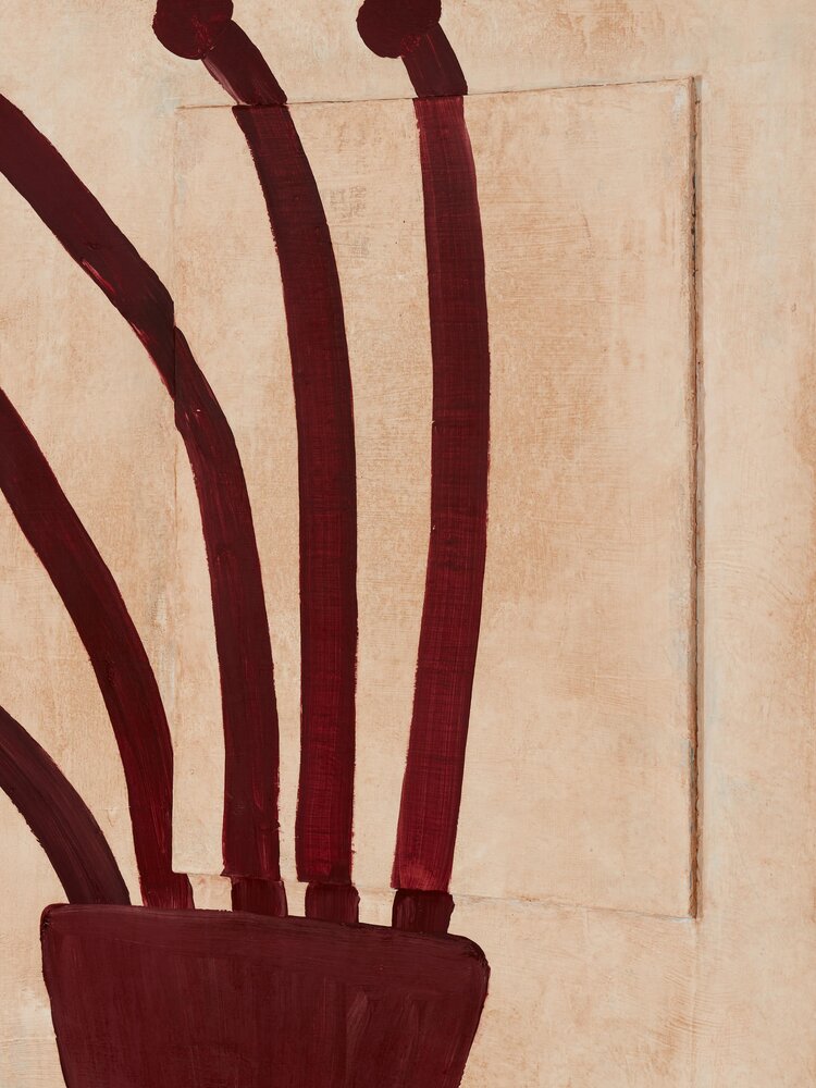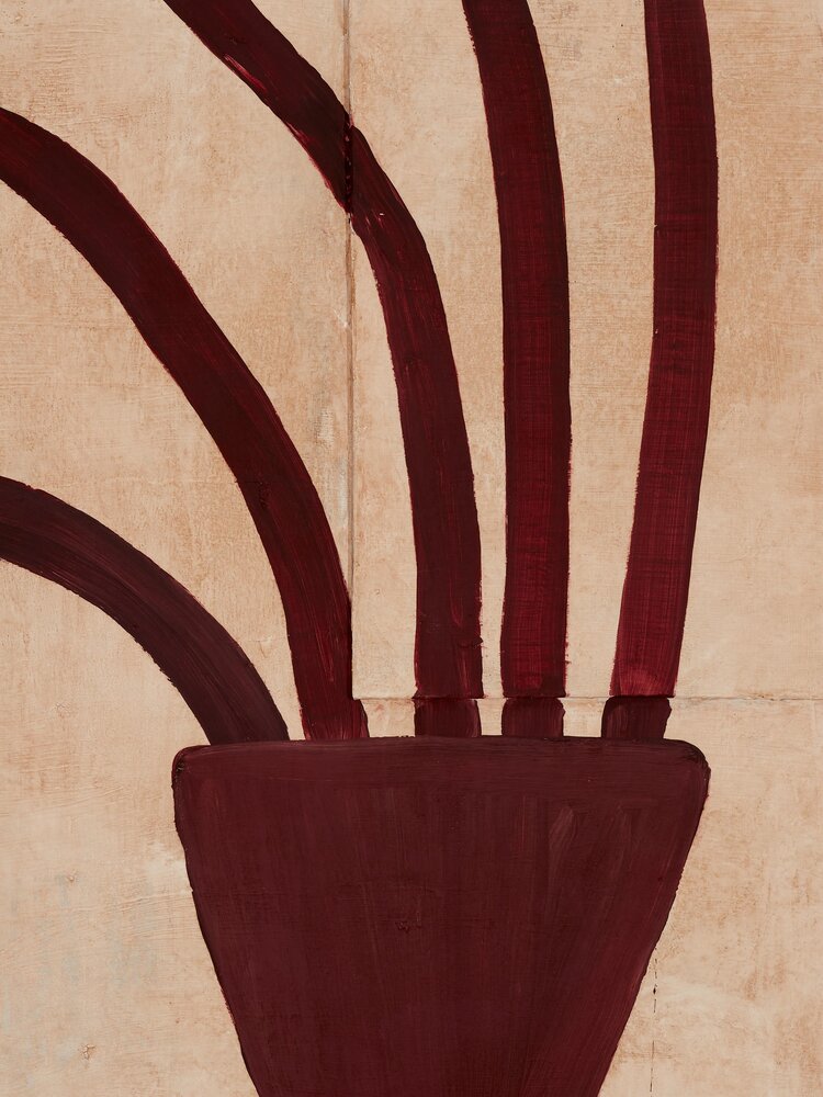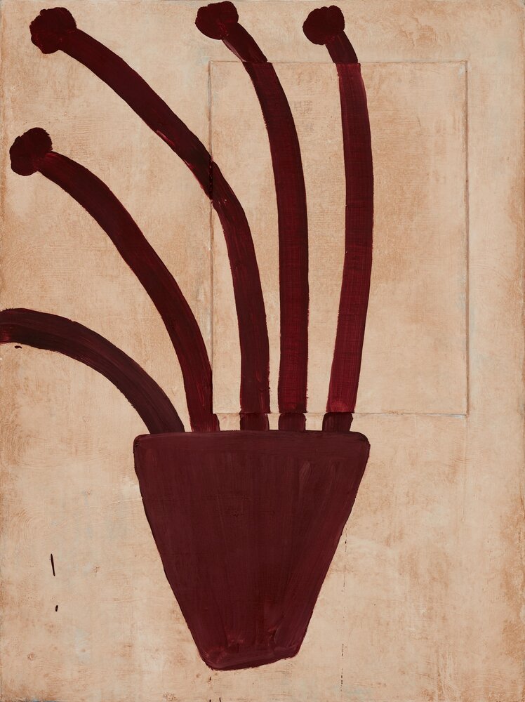 His distinguised flowers emerge naively from their pots and rise up in an almost magical gesture of freedom, simplifying reality and shaping the space.