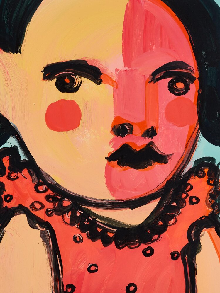 Poland (1976)In her portraits, Paulina Archambault (1976, lives and works in Viriginia/USA) searches for the purest human emotions. To do so, she likes to reach back to her childhood. By being as honest and intimate as possible in the process herself, she wants to revive those genuine emotions. While each new work starts with a few rough contours based on an abstract idea, Archambault polishes and tinkers with each image until it is just right. It is to this layering that the work owes its depth and expressive power. The acrylic paint allows her to work in both thicker and just more transparent layers, and to apply texture to the canvas through unconventional tools. Although the frontal portraits sometimes appear terrifying, for Paulina Archambault they primarily express melancholy and childlike innocence. The dark eyes give them a mysterious aura, raising questions about a deeper truth.