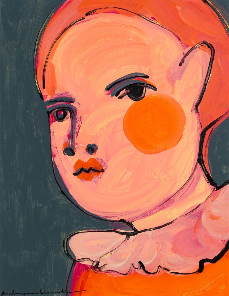 Poland (1976)In her portraits, Paulina Archambault (1976, lives and works in Viriginia/USA) searches for the purest human emotions. To do so, she likes to reach back to her childhood. By being as honest and intimate as possible in the process herself, she wants to revive those genuine emotions. While each new work starts with a few rough contours based on an abstract idea, Archambault polishes and tinkers with each image until it is just right. It is to this layering that the work owes its depth and expressive power. The acrylic paint allows her to work in both thicker and just more transparent layers, and to apply texture to the canvas through unconventional tools. Although the frontal portraits sometimes appear terrifying, for Paulina Archambault they primarily express melancholy and childlike innocence. The dark eyes give them a mysterious aura, raising questions about a deeper truth.