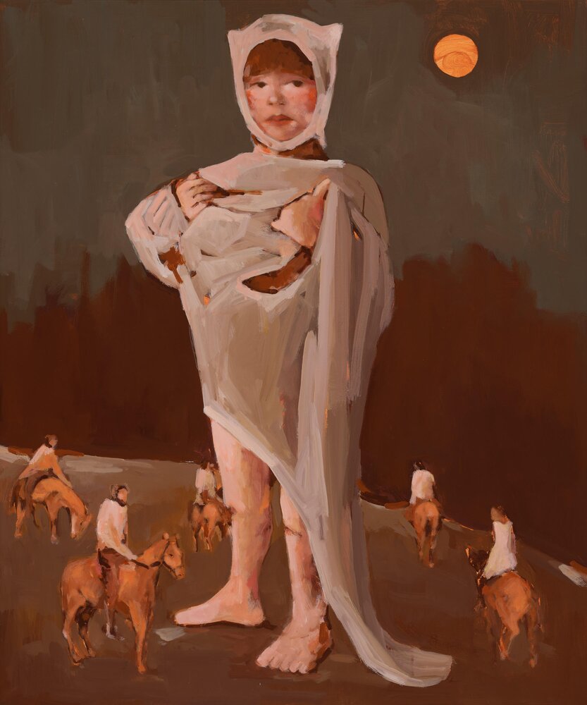 Georgia (2000)Thanks to her father-artist, Irinka Talakhadze (b. 2000, lives and works in Tbilissi, Georgia) received art from a very early age. Since his death, she has continued to pursue her artistic dream as a self-taught artist. Through thorough experimentation with materials and techniques and a study of the work of Francis Bacon, Pablo Picasso, Egon Schiele and others, she tries to translate her inner world onto canvas as convincingly as possible. Spontaneity, dynamism, transparency and honesty are the keywords. The transformation from solidly designed women in massive uniforms to more transparent, airy figures fits perfectly into this endeavour. With her paintings, Talakhadze aims to make the viewer pause to consider the relationship between what we really see in reality and what an image leads us to believe. Or how utopia and dystopia, or happiness and tristesse, can be contained in the same image, and what this can teach us not only about the world but also about ourselves.
