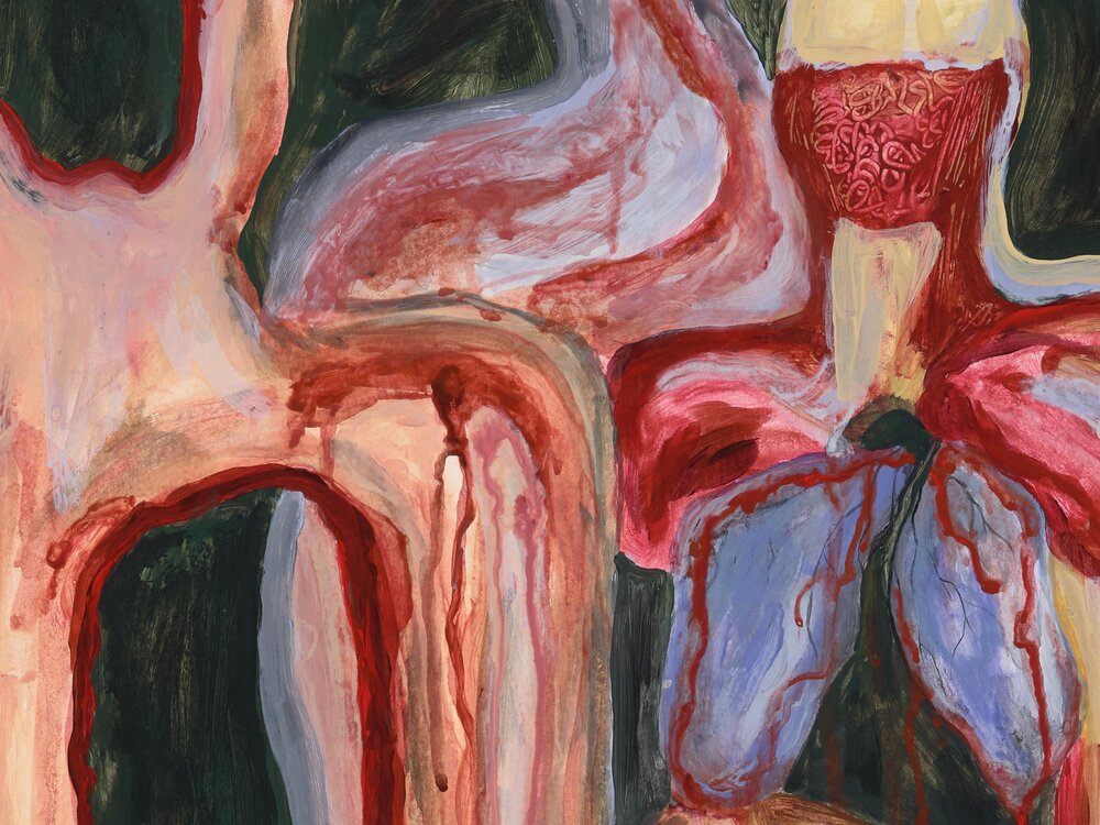 Color plays a crucial role in her work. Her palette doesn’t simply seek attention; it demands it. Bold, unapologetic, and immersive, her use of color becomes a voice of its own. Her practice often draws on personal experiences and bodily discomforts, such as in her project “Growing New Skin”, which investigates the body as a site of unease and alienation. Born from emotional and physical tension, this series portrays healing as an ongoing wound—raw yet regenerative.