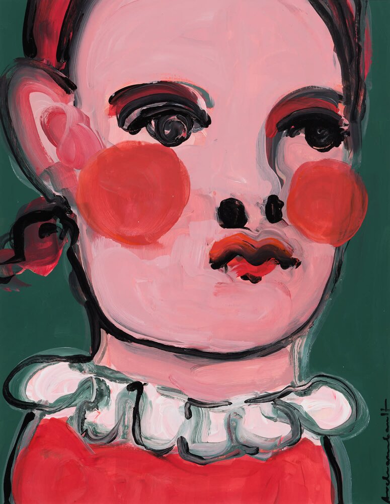 Poland (1976)In her portraits, Paulina Archambault (1976, lives and works in Viriginia/USA) searches for the purest human emotions. To do so, she likes to reach back to her childhood. By being as honest and intimate as possible in the process herself, she wants to revive those genuine emotions. While each new work starts with a few rough contours based on an abstract idea, Archambault polishes and tinkers with each image until it is just right. It is to this layering that the work owes its depth and expressive power. The acrylic paint allows her to work in both thicker and just more transparent layers, and to apply texture to the canvas through unconventional tools. Although the frontal portraits sometimes appear terrifying, for Paulina Archambault they primarily express melancholy and childlike innocence. The dark eyes give them a mysterious aura, raising questions about a deeper truth.